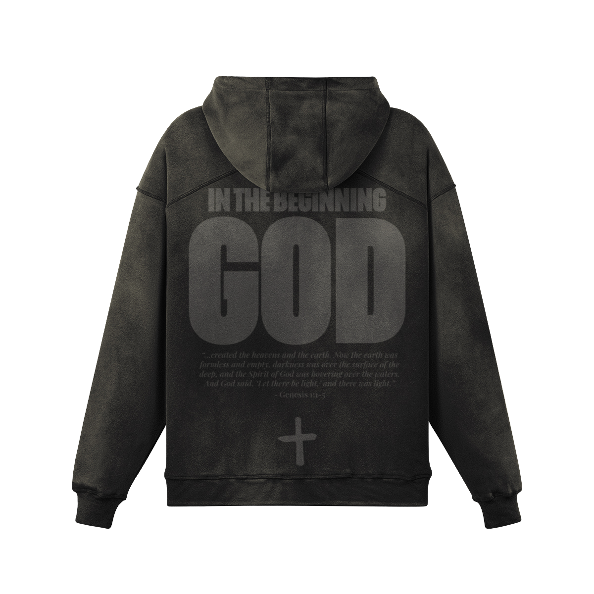 BLACK FADED HOODIE - IN THE BEGINNING GOD